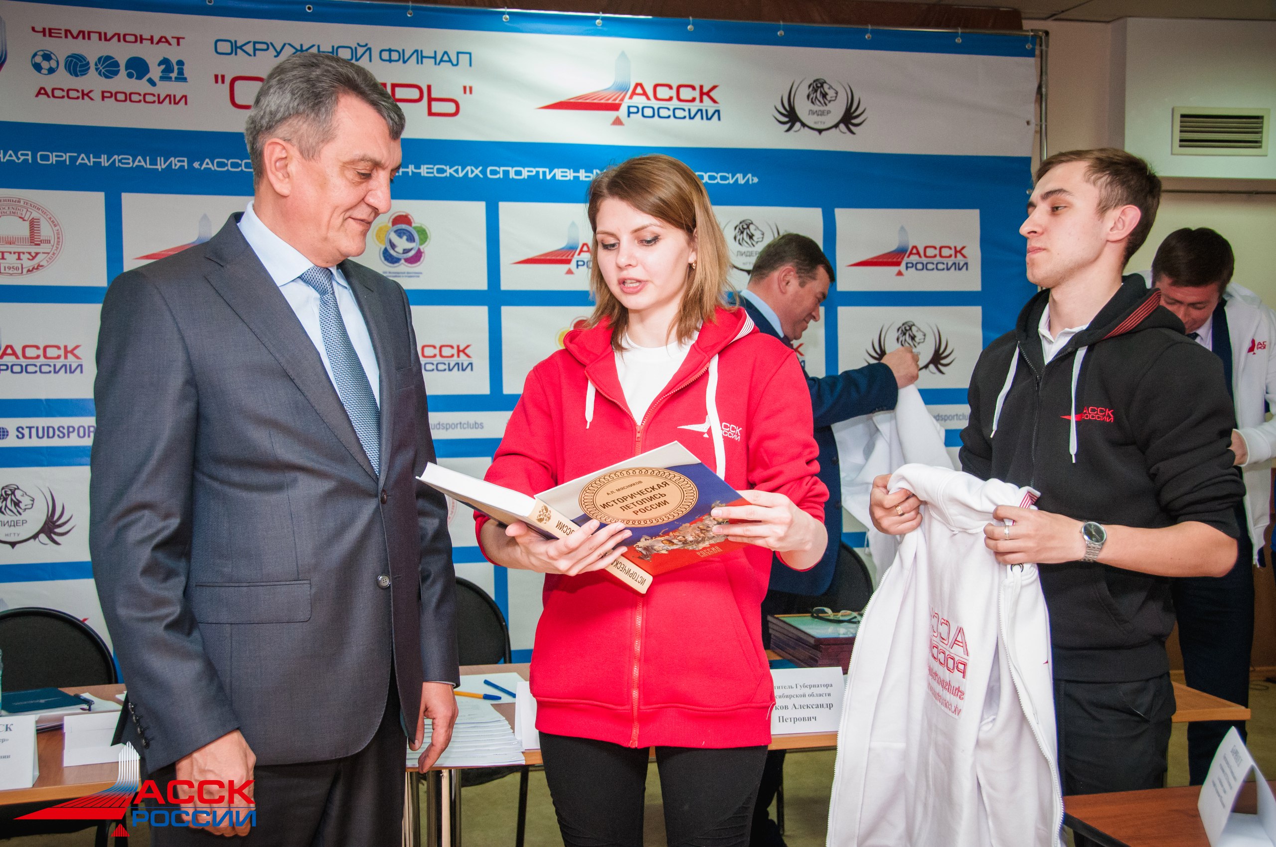 27 апреля в Центре культуры НГТУ состоялось совещание активистов АССК России в СФО при участии Полномочного представителя Президента РФ в СФО Меняйло Сергея Ивановича. На встрече присутствовали заместитель Губернатора Новосибирской области Титков Александр Петрович и руководитель департамента физической культуры и спорта НСО Ахапов Сергей Александрович. В ходе встречи студентка Новосибирского ГАУ, председатель АССК России Юлия Пуртова получила благодарственное письмо от Сергея Меняйло, а Дмитрий Долгополов, Михаил Фоменко, Леонид Цудиков и Диана Кротенко – благодарственные письма от Губернатора Новосибирской области.
