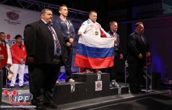 На втором месте Leon Franklin из Эквадора с результатом 602.5 (225-142.5-235) кг. Бронза у еще одного спортсмена сборной России Мухомедьянова Евгения с суммой троеборья 570 (212.5-135-222.5) кг.