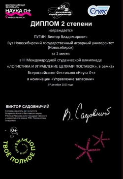 Студент Пугин Виктор Владимирович занял 2 место в номинации «Управление запасами».